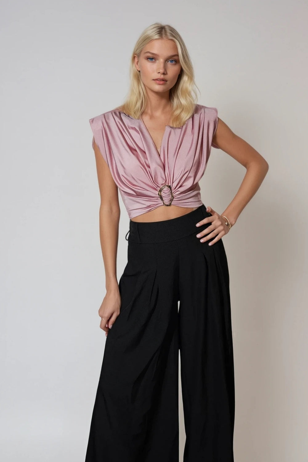 Elegante High Waist Palazzo Hose Damen – Schwarz, Weit & Fließend