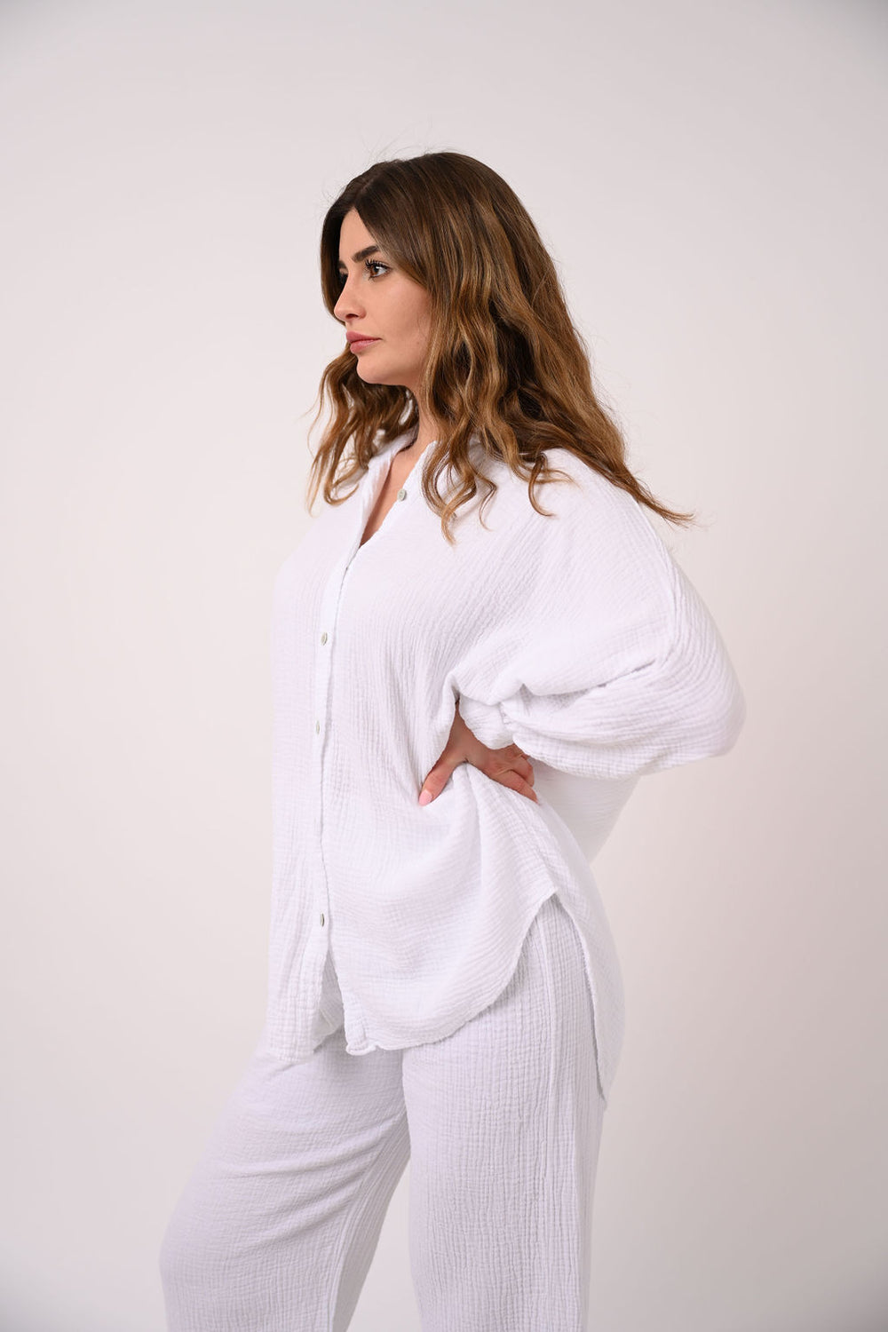 Mit unserem Soft Elegance Musselin Set vereinst du mühelos Stil und Bequemlichkeit. Die lockere Oversize-Passform, kombiniert mit dem zarten, atmungsaktiven Musselin-Stoff, sorgt für ein angenehmes Tragegefühl – den ganzen Tag. Die trendige Farbe und der moderne Schnitt machen dieses Set zu einem stilvollen Begleiter für Alltag, Reisen oder entspannte Anlässe. Warum du es lieben wirst: • Stylisher Look trifft auf Wohlfühlfaktor • Perfekt kombinierbar – zusammen oder einzeln • Ideal für jede Jahreszeit • 100 % Baumwolle – soft, natürlich & hautfreundlich