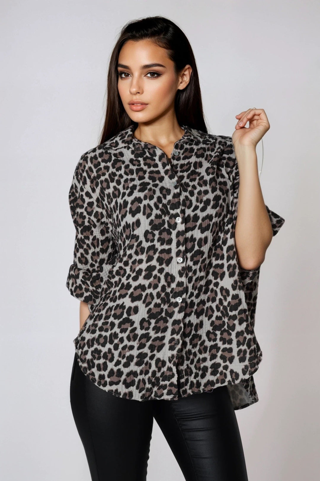 Luftige Musselin-Bluse mit Pinkem Animal-Print – Trendig & Feminin
