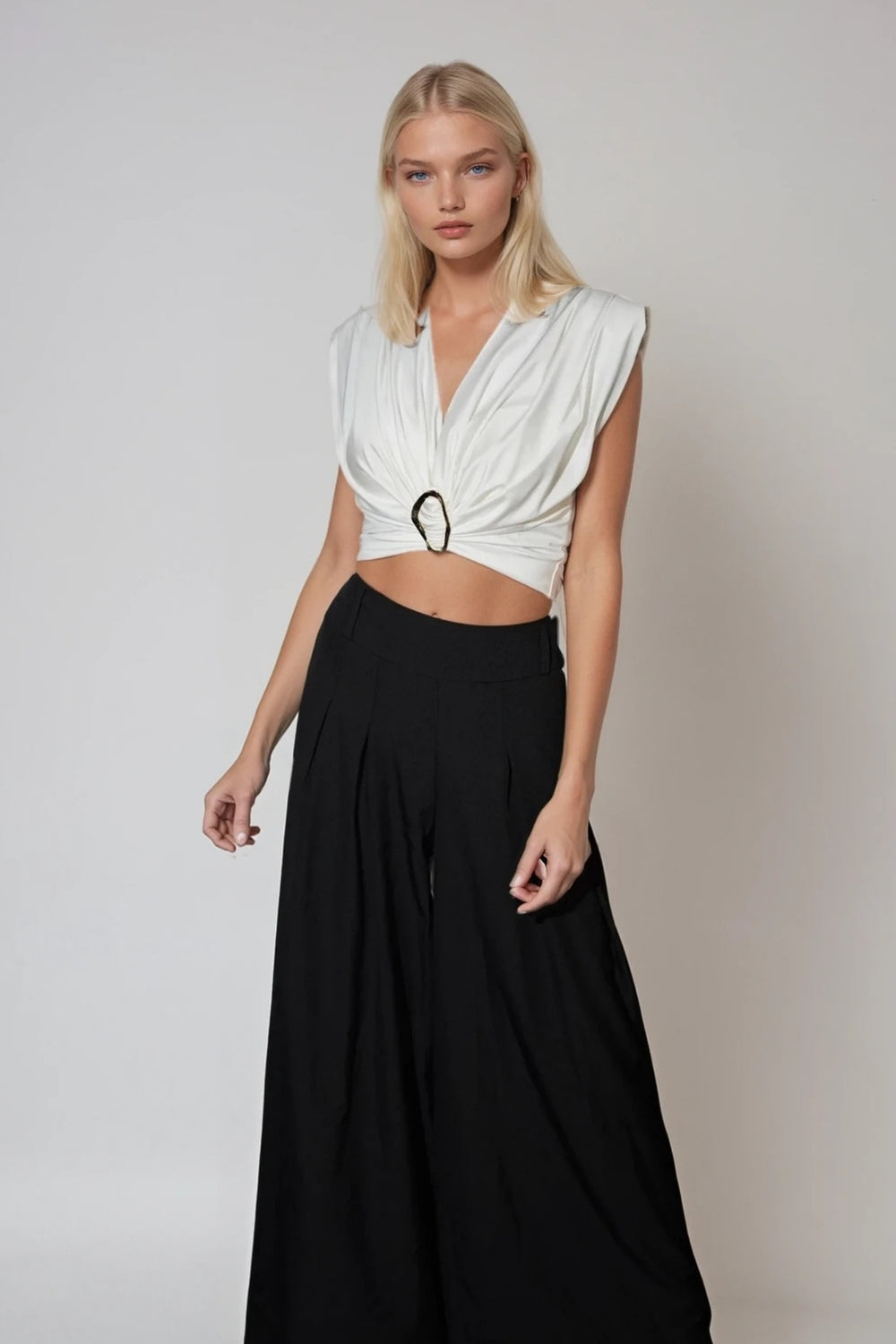 Satin-Top Damen Weiß  Elegantes Wickel-Top mit Dekoring
