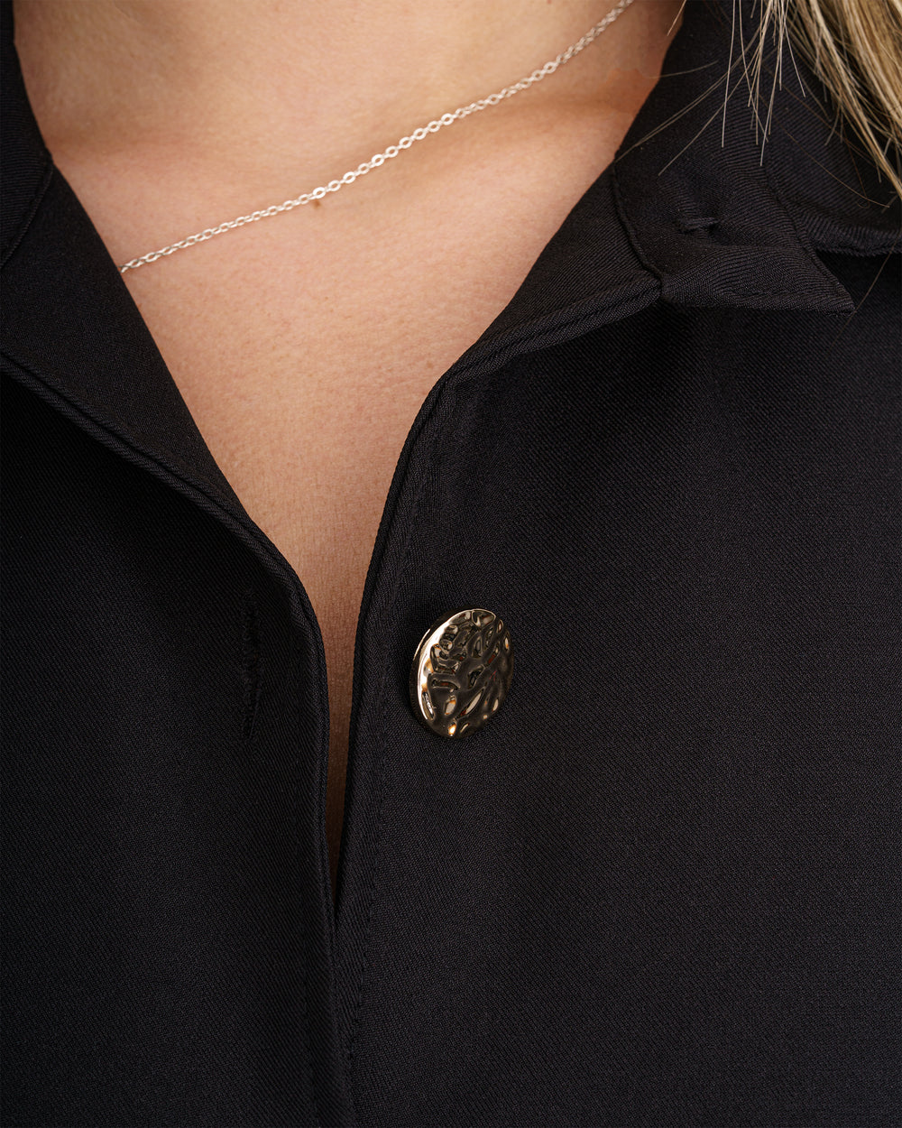 Der Stoff wirkt leicht, fließend und angenehm zu tragen – perfekt für einen Look, der Bewegungsfreiheit und Eleganz ausstrahlt. Fließende Materialien unterstreichen die moderne Leichtigkeit des Outfits.