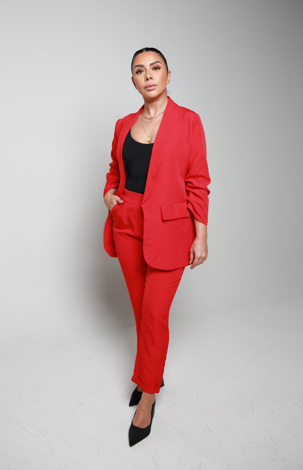 Dieses Blazer- und Hosen-Set ist die perfekte Kombination aus Eleganz und Komfort.