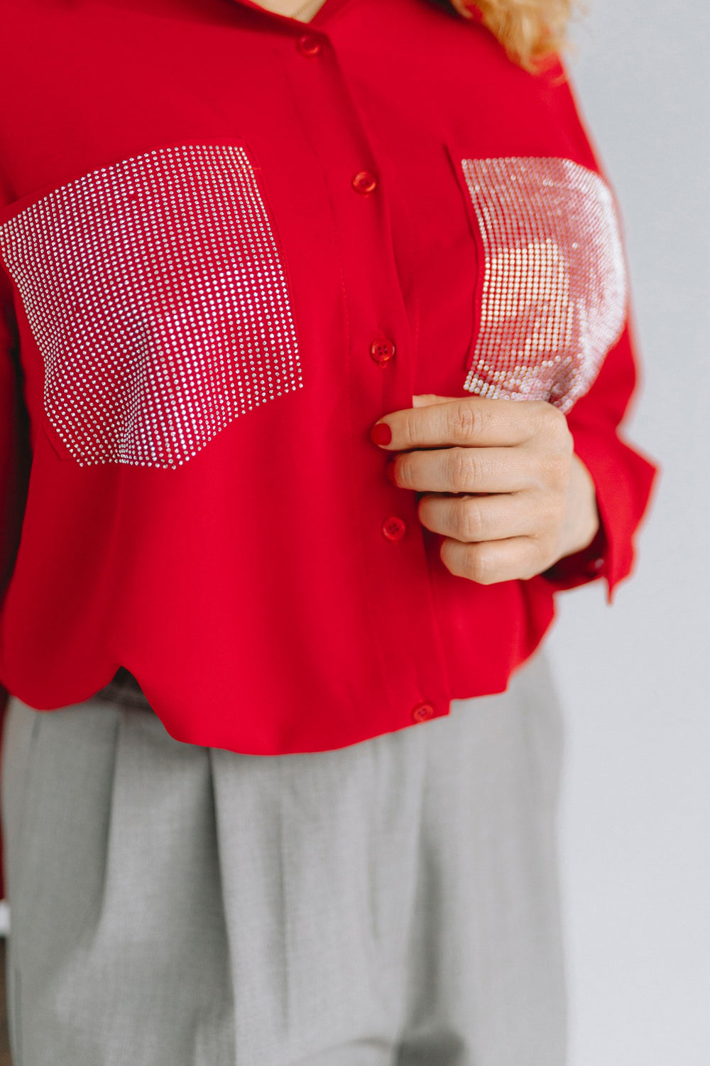 Trage die Bluse unter einem ärmellosen Kleid oder einer Strickweste. Das Layering verleiht dem Outfit Tiefe und einen modischen Touch.