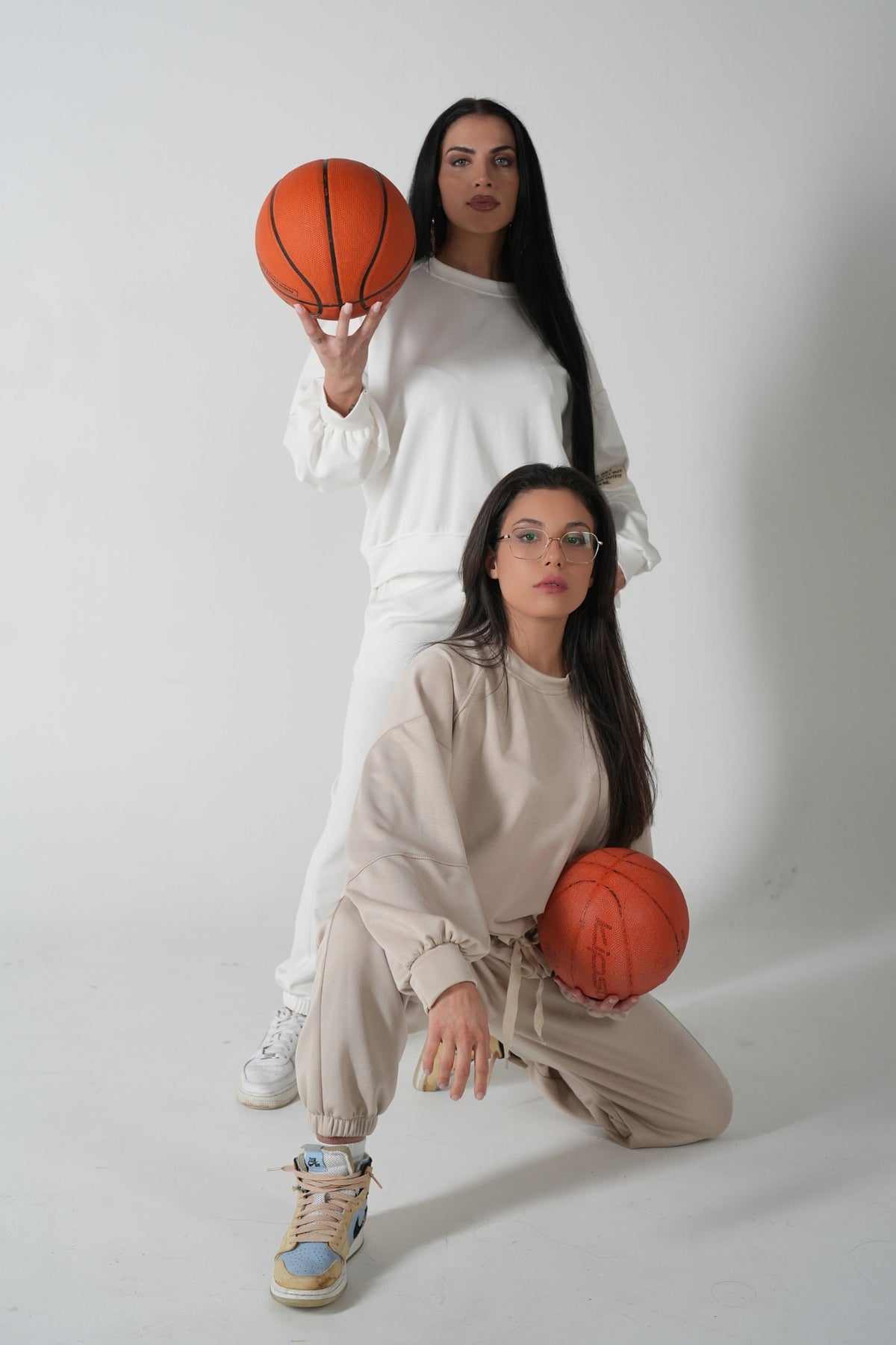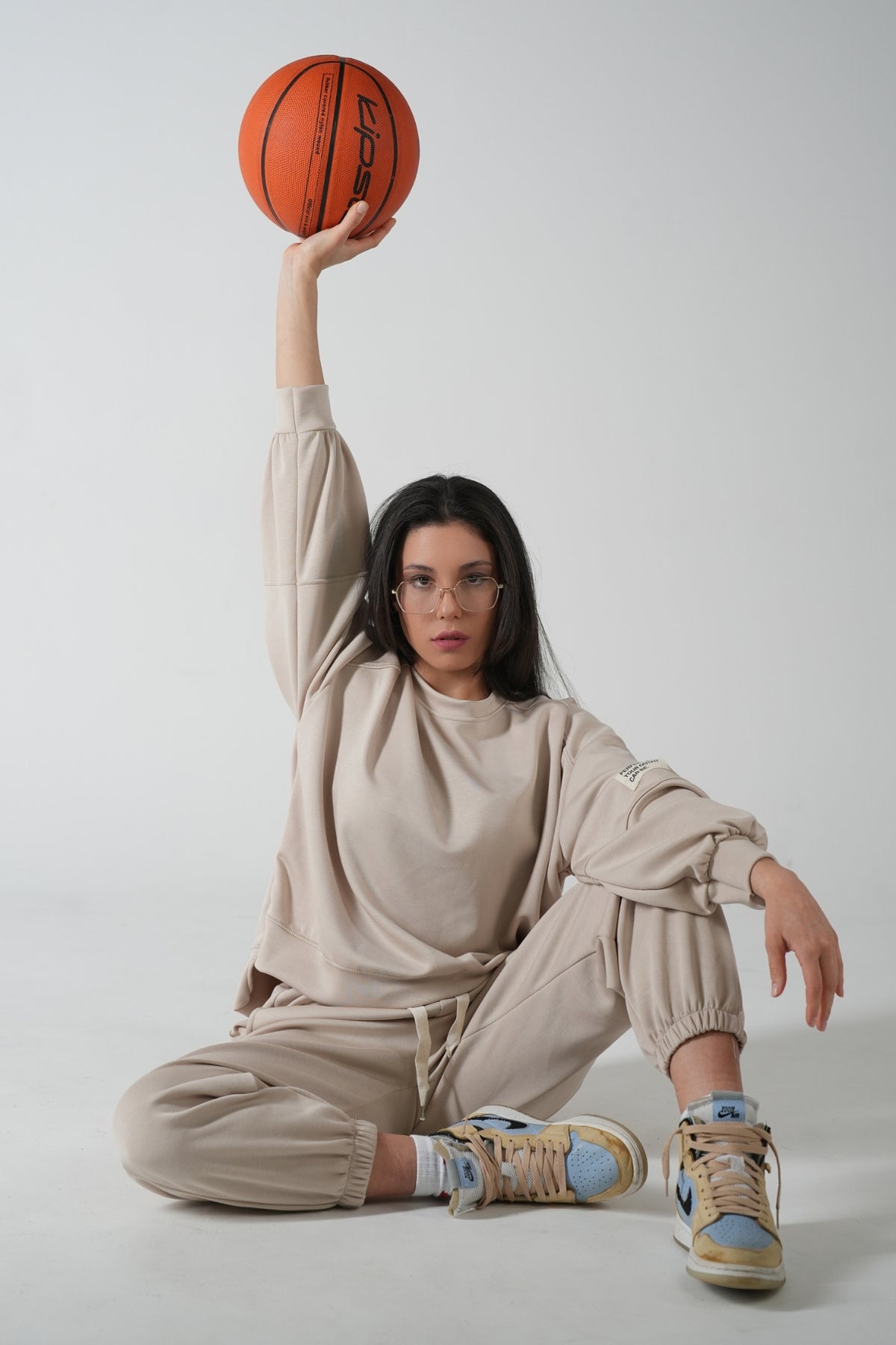 • Stilvoll: Der minimalistische Look mit neutralen Farben strahlt Eleganz aus. Die Details wie die Taillenkordel und das kleine Label auf dem Sweatshirt verleihen dem Set einen modernen Touch. Kombiniert mit der braunen Tasche und weißen Sneakers wirkt das Ensemble urban und modisch.