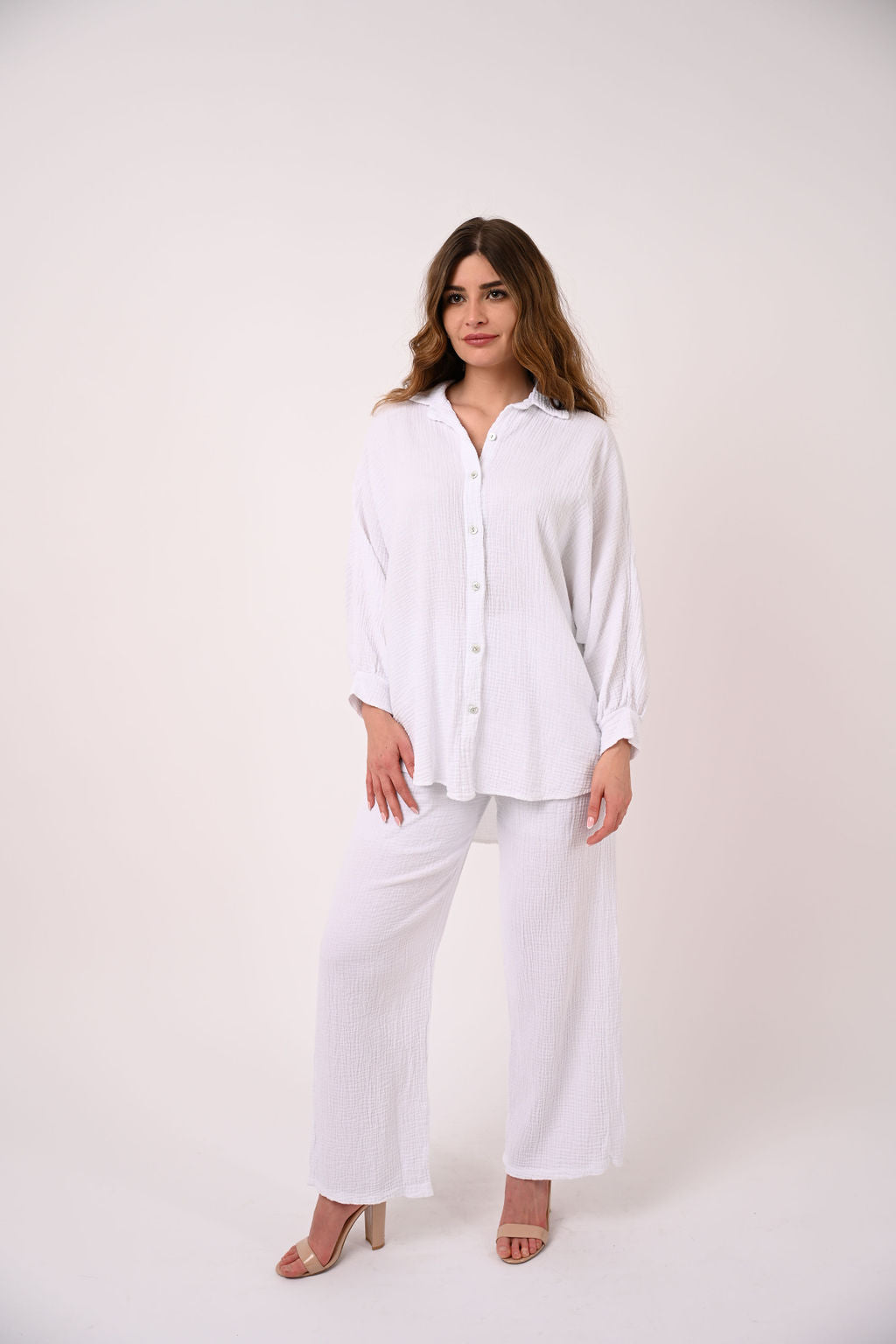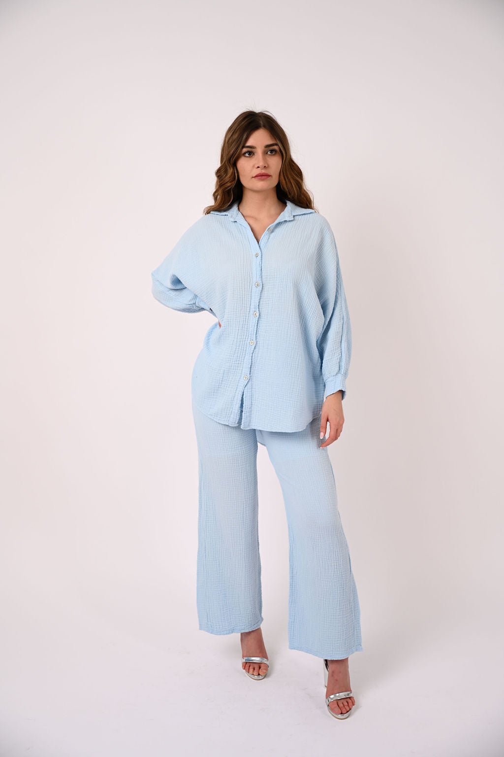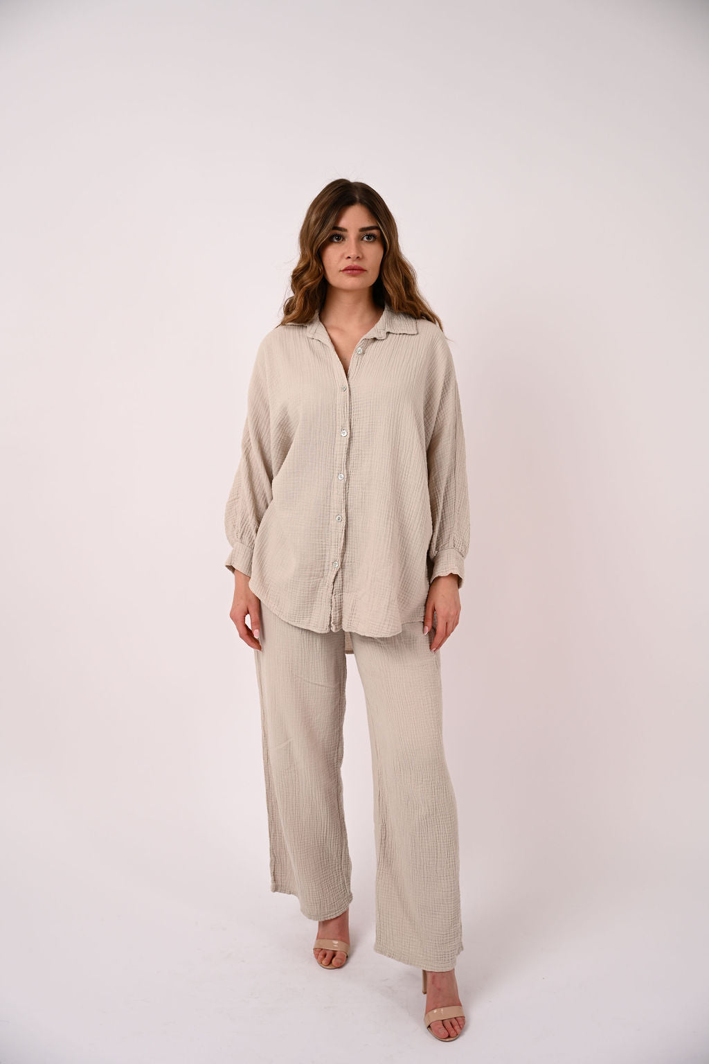 Mit unserem Soft Elegance Musselin Set vereinst du mühelos Stil und Bequemlichkeit. Die lockere Oversize-Passform, kombiniert mit dem zarten, atmungsaktiven Musselin-Stoff, sorgt für ein angenehmes Tragegefühl – den ganzen Tag. Die trendige Farbe und der moderne Schnitt machen dieses Set zu einem stilvollen Begleiter für Alltag, Reisen oder entspannte Anlässe. Warum du es lieben wirst: • Stylisher Look trifft auf Wohlfühlfaktor • Perfekt kombinierbar – zusammen oder einzeln • Ideal für jede Jahreszeit • 100 % Baumwolle – soft, natürlich & hautfreundlich